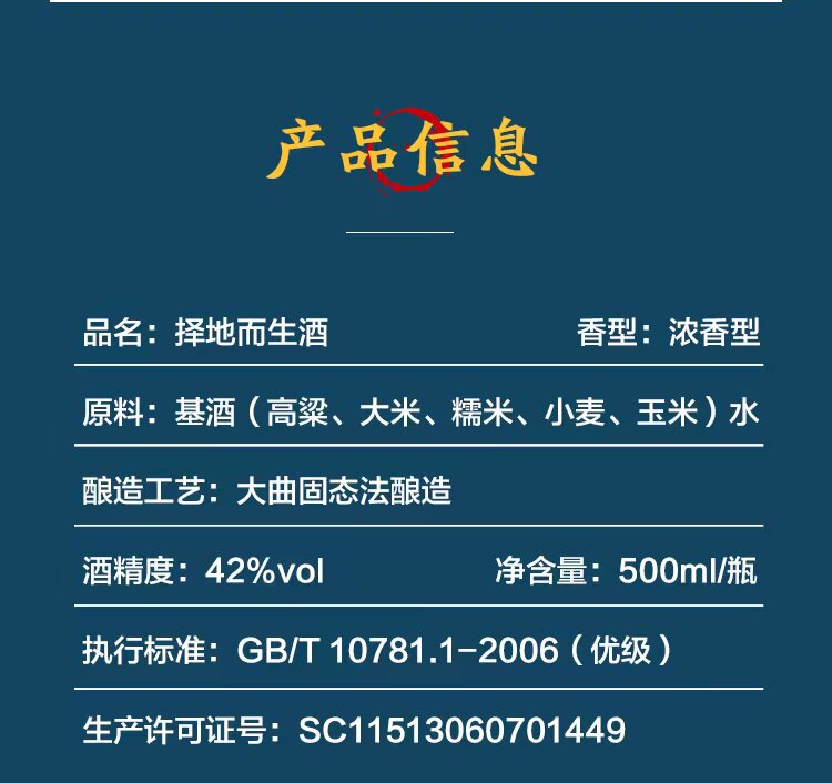择地而生粮食白酒的原酒,是在四川宜宾严格按照五粮配比酿造而成。