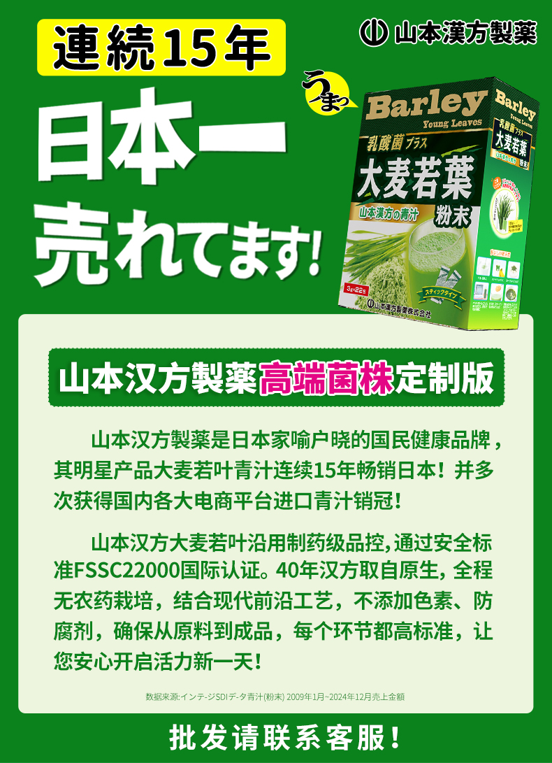 如果你想购买山本汉方乳酸菌大麦若叶青汁,给我发邮件,可以零售、批发、经销,这款高端菌株定制款只有我们这里是正规渠道,日本山本汉方工厂直发国内。